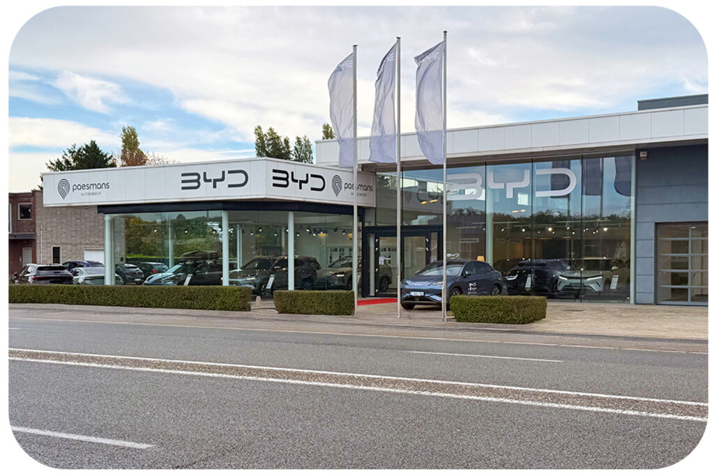 BYD Lommel kan je vinden op de Edward Anseelestraat 24, net naast de Ringlaan. In onze pop-up showroom kan je het volledig assortiment van BYD ontdekken en staat ons team klaar om je van begin tot einde te begeleiden in je aankoop van een nieuwe of tweedehands BYD.